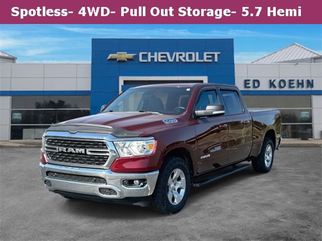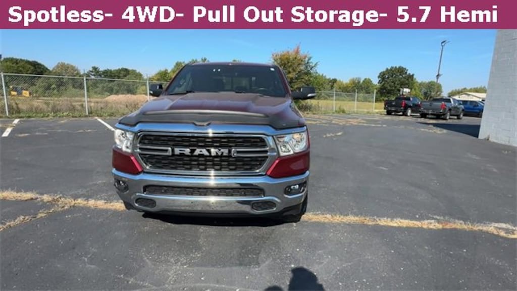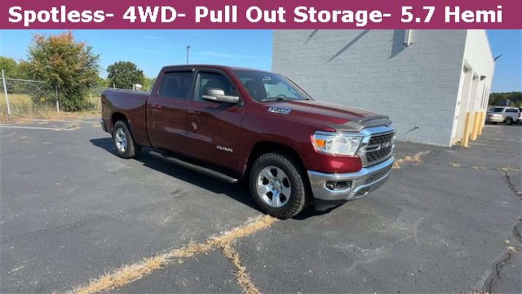 1500 Big Horn/Lone Star, 4D Crew Cab, HEMI 5.7L V8 Multi Displacement VVT, 8-Speed Automatic, 4WD, Delmonico Red Pearlcoat, Diesel Gray/Black Cloth, 115V Auxiliary Power Outlet, 115V Auxiliary Rear Power Outlet, 2nd Row In Floor Storage Bins, 3 Rear Seat Head Restraints, 3.21 Rear Axle Ratio, 4 Way Front Headrests, 4-Wheel Disc Brakes, 400W Inverter, 4G LTE Wi-Fi Hot Spot, 6 Speakers, 8.4 Touchscreen Display, ABS brakes, Air Conditioning ATC w/Dual Zone Control, AM/FM radio, Apple CarPlay, Auto-Dimming Exterior Driver Mirror, Auto-Dimming Rear-View Mirror, Big Horn Badge, Big Horn Level 2 Equipment Group, Black Exterior Mirrors, Black Premium Power Mirrors, Bluetooth Handsfree Phone & Audio, Class IV Receiver Hitch, Cluster 7.0 TFT Color Display, Compass, Connectivity - US/Canada, Convex Wide-Angle Mirror Insert, Delay-off headlights, Dual front impact airbags, Dual front side impact airbags, Emergency communication system: SiriusXM Guardian, Exterior Mirrors Courtesy Lamps, Exterior Mirrors w/Heating Element, Exterior Mirrors w/Supplemental Signals, For Details, Visit DriveUconnect.com, Front anti-roll bar, Front Center Armrest w/Storage, Front fog lights, Front reading lights, Front Seat Back Map Pockets, Front wheel independent suspension, Fully automatic headlights, Global Telematics Box Module (TBM), Glove Box Lamp, Google Android Auto, GPS Antenna Input, Heated door mirrors, Heated Front Seats, Heated Steering Wheel, Illuminated entry, Integrated Center Stack Radio, Integrated Voice Command w/Bluetooth, Leather steering wheel, Low tire pressure warning, Media Hub w/2 Charge Only USBs, Occupant sensing airbag, Outside temperature display, Overhead airbag, Overhead console, ParkSense Front/Rear Park Assist w/Stop, ParkView Rear Back-Up Camera, Passenger door bin, Passenger vanity mirror, Power 2-Way Driver Lumbar Adjust, Power 8-Way Driver Seat, Power Adjustable Pedals, Power door mirrors, Power steering, Power windows, Power-Folding Mirrors, Quick Order Package 25Z Big Horn, Radio data system, Radio: Uconnect 3 w/5 Display, Radio: Uconnect 5 W w/8.4 Display, Rear 60/40 Folding Seat, Rear anti-roll bar, Rear Dome w/On/Off Switch Lamp, Rear Power Sliding Window, Rear seat center armrest, Rear step bumper, Rear Wheelhouse Liners, Rear Window Defroster, Remote keyless entry, Remote Start System, Security Alarm, SiriusXM Radio Service, SiriusXM Satellite Radio, Steering wheel mounted audio controls, Sun Visors w/Illuminated Vanity Mirrors, Tachometer, Telescoping steering wheel, Tilt steering wheel, Traction control, Trip computer, Universal Garage Door Opener, USB Host Flip, Variably intermittent wipers, Voltmeter, Wheels: 18 x 8 Cast-Aluminum Painted. Just thought you should know...All pre-owned vehicles go through a comprehensive 126 multi point vehicle inspection. New wiper blades, New Cabin Air Filter, New engine Filter, and fresh New Oil Change, then detailed for its new owner.